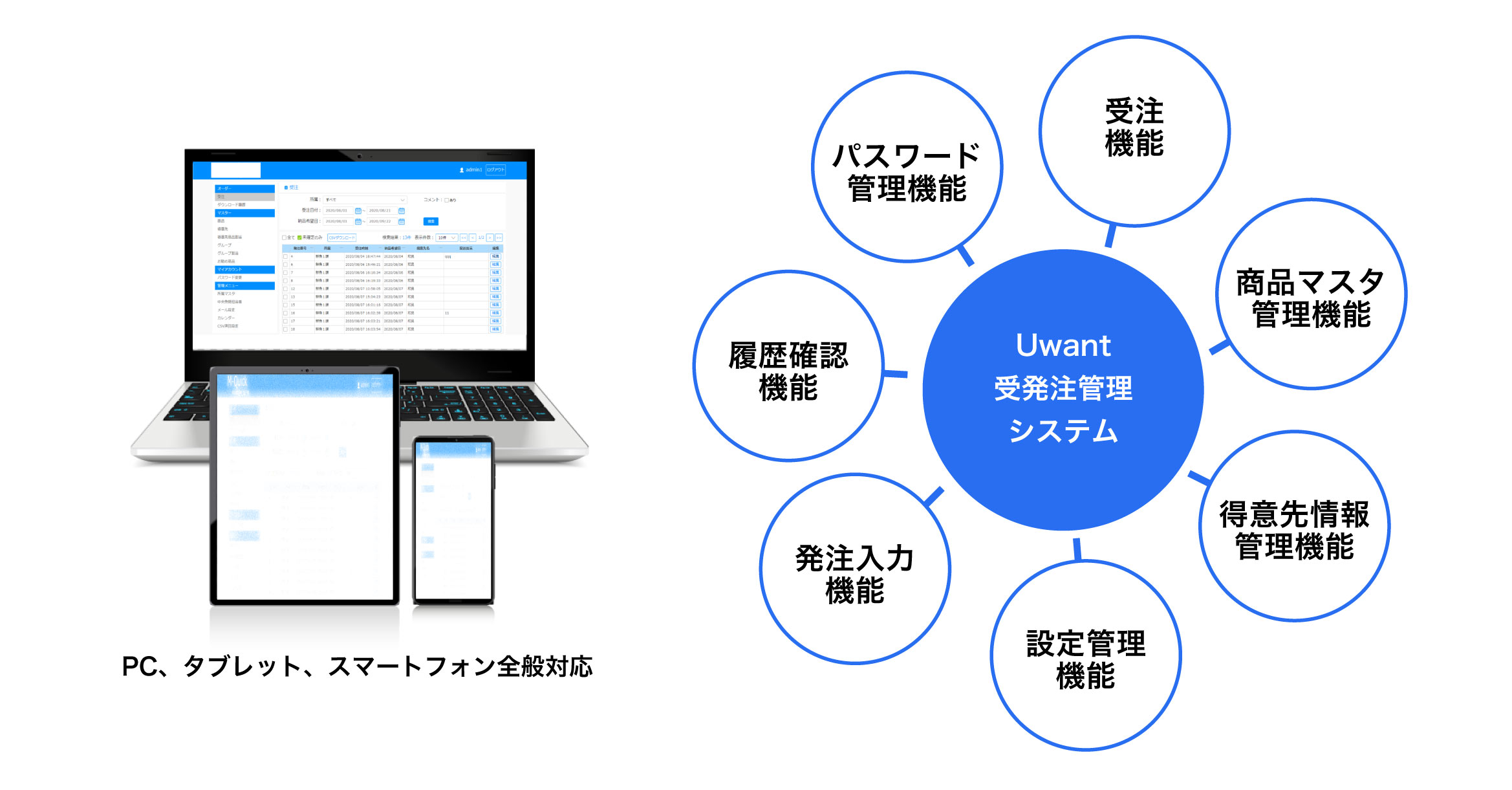 Uwant受発注システムはBtoB向けの受注や発注に関わる一連の業務を一元管理するWebシステムです。
